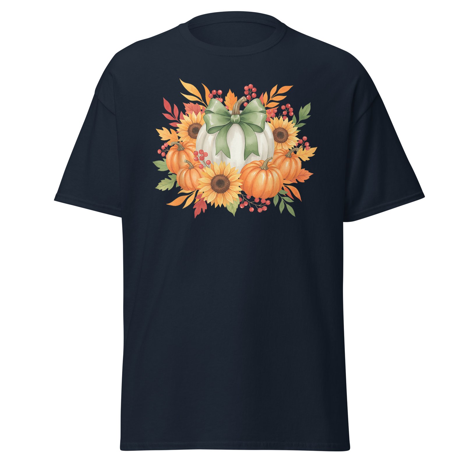 This funny Sunflower Pumpkin Bouquet Fall Thanksgiving Autumn Holiday tees are perfect for men, women, and kids to wear at Thanksgiving dinners, autumn parties, and family gatherings.