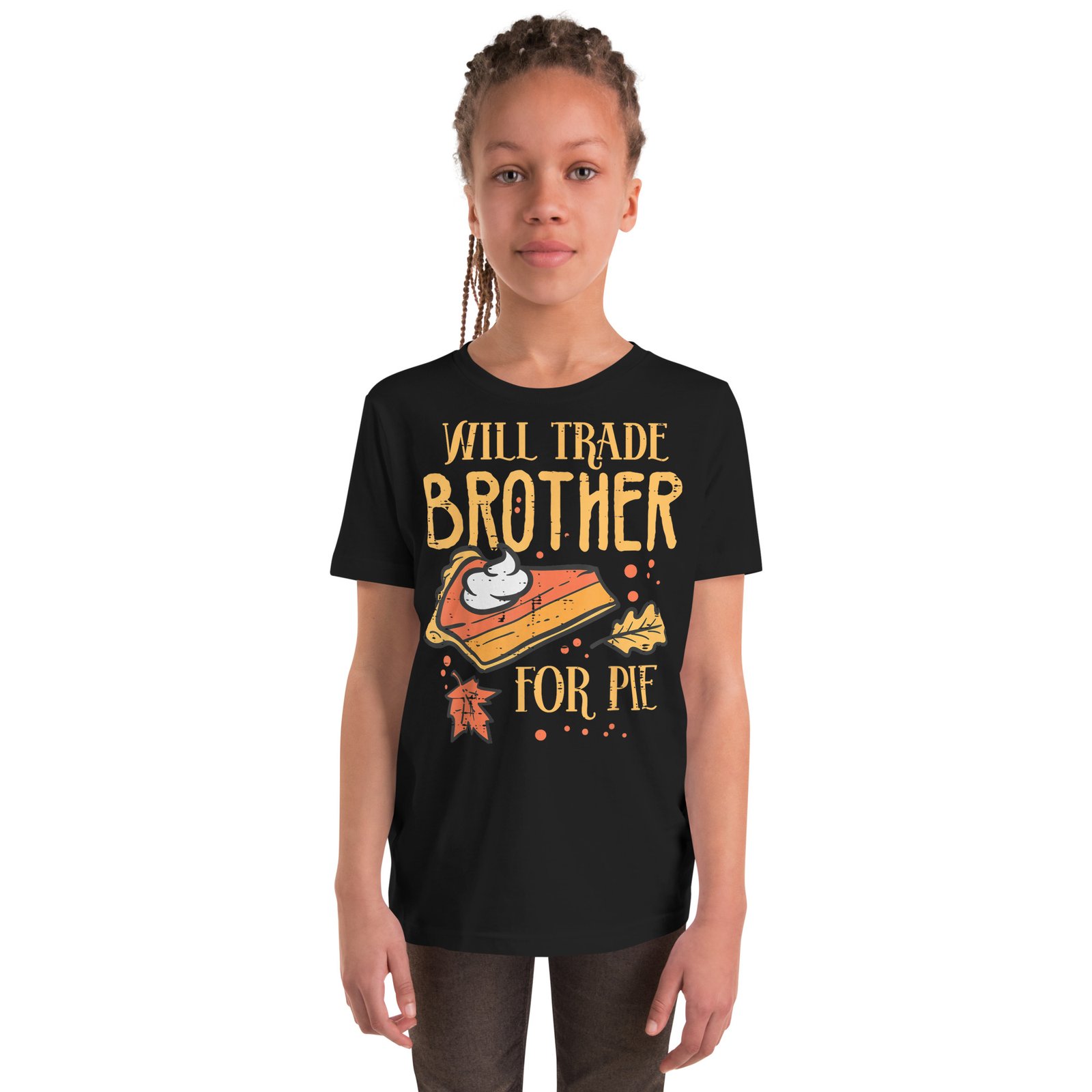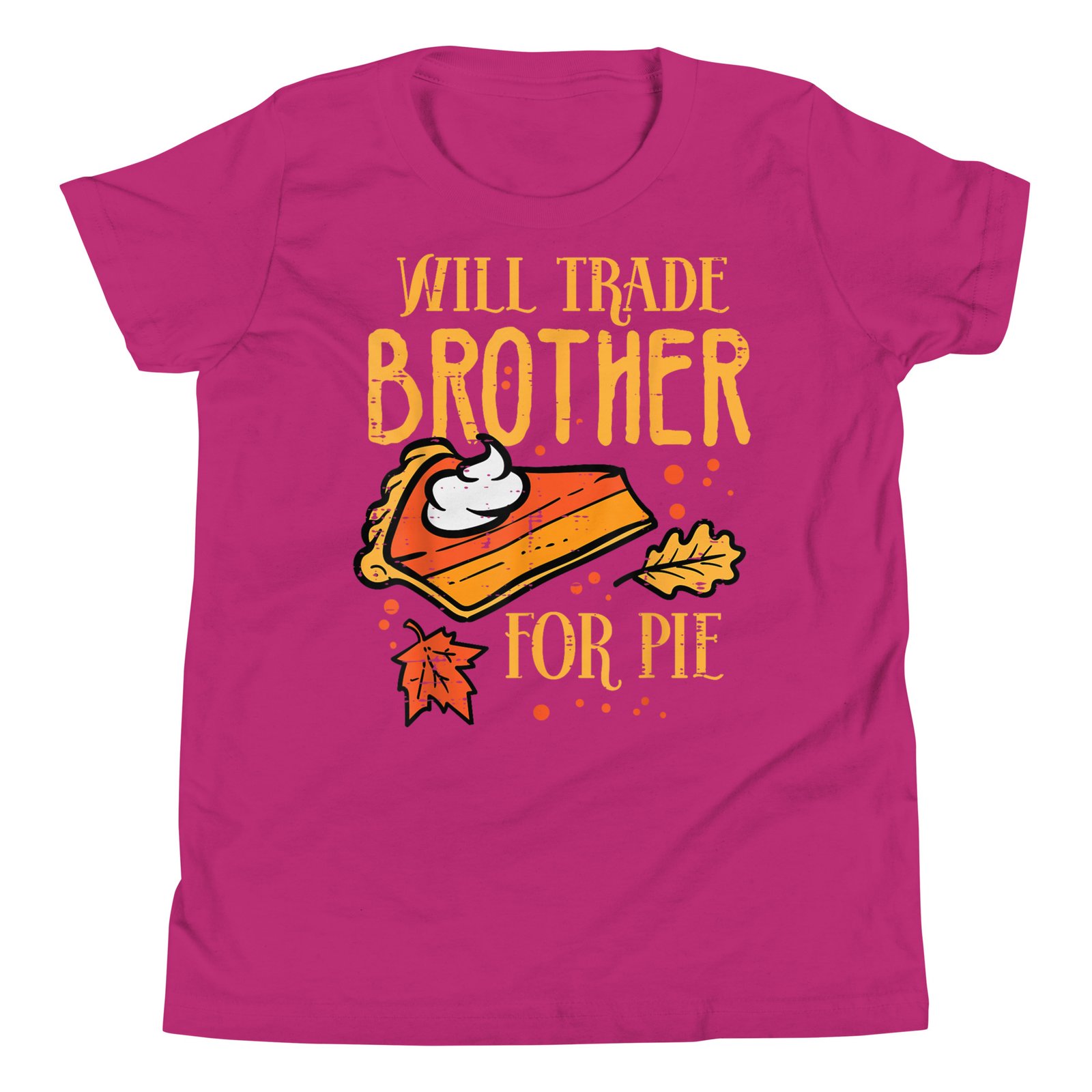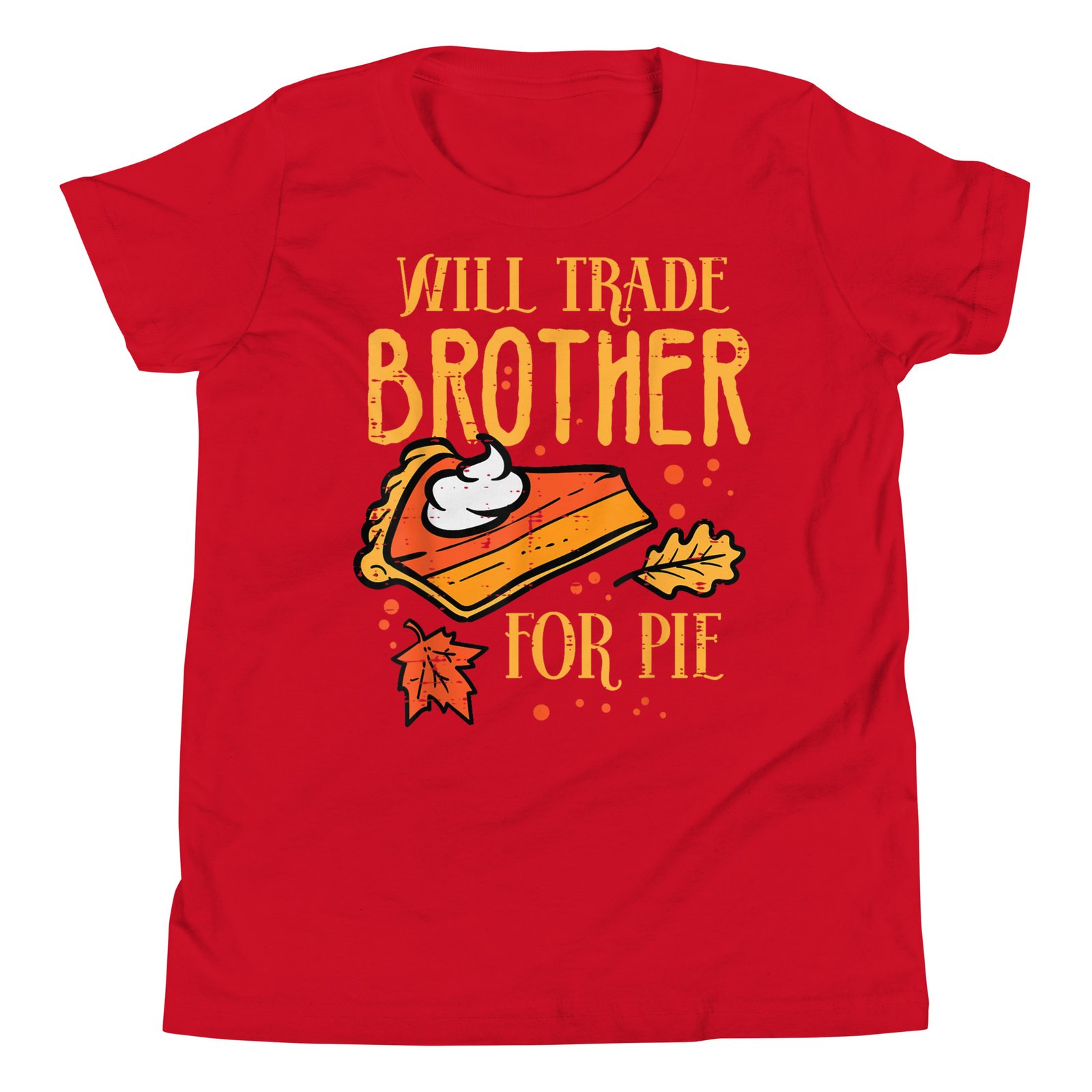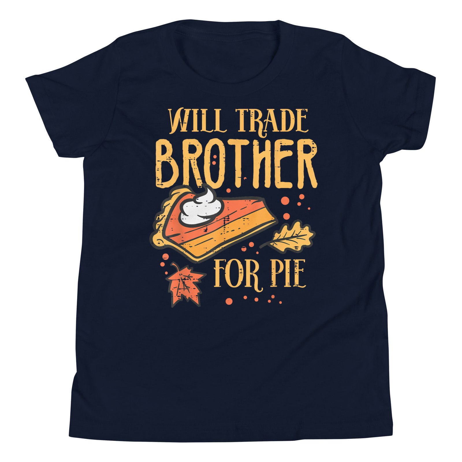 Celebrate Thanksgiving with your family wearing this funny Thanksgiving Will Trade Brother For Pie T-Shirt at Thanksgiving Dinner or Turkey Day! Perfect autumn fall season gift idea and present for men, women, boys, girls, kids and friends